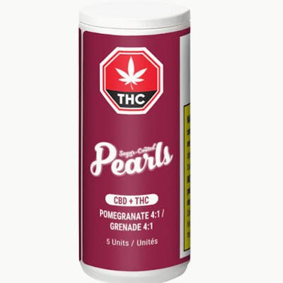 Pomegranate Pearls are infused with CBD and THC in a 4:1 ratio. Each sugar-coated pearl contains 8 mg of CBD and 2 mg of THC. Pearls are bursting with natural flavour and coated in sugar for a sweet treat with a total of five gummies per pack.