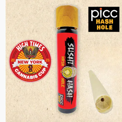1 Gram | Hash Rosin Infused Pre-Roll Top shelf indoor full flower paired with artisan solventless hash. Just like your favorite Sushi, these hash holes are curated from nature's best ingredients for a pure experience. Flavor Profile: This profile offers a sophisticated blend of spicy black pepper and earthy hops, rounded out by bright citrus zest and a subtle floral sweetness. Dominant terpenes: ß-Caryophyllene, d-Limonene, a-Humulene, Linalool, trans-ß-Farnesene Effects: Deeply relaxing and physically soothing, this combination provides a heavy body high that is ideal for nighttime use and deep relaxation. Key Features: Crown Wick™ – Even perimeter ignition for smooth, reliable lighting PLR Tip™ – Path of Least Resistance Tip channels airflow to eliminate start-up runs Infused Concentrate Core™ – Composed of solventless hash rosin AIR PAK™ + S.P.A.™ Tech – Eliminates canoeing while maintaining steady, smooth airflow Heat Curve Efficiency – Vaporizes cannabinoids and terpenes at optimal temperature for maximum effectiveness