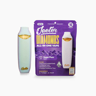 JEETER's Sugar Plum Diamond AIO 1G cartridge delivers premium sativa-driven energy in a convenient, ready-to-use format. This all-in-one vape combines sparkling diamond clarity with uplifting effects perfect for daytime creativity and focus. Sugar Plum enchants with sweet, fruity notes of plum and berry, accented by subtle floral undertones that make each draw a flavorful experience. The sativa classification promotes an energetic, euphoric high that keeps you motivated and socially engaged throughout your day. Crafted with quality cannabis oil, this 1-gram cartridge requires no charging or setup—just open and enjoy. Ideal for on-the-go consumers seeking potent, flavorful vapor with smooth delivery and reliable performance. JEETER's signature attention to quality ensures consistent effects and exceptional taste from first puff to last.