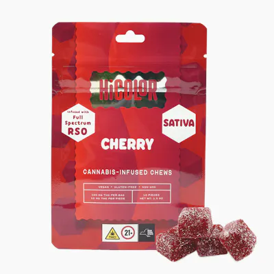 There’s nothing like a splash of color to brighten up your day and take a break from routine. HiCOLOR adds that flavor – sweet and delicious – just what the doctor ordered! Let’s laugh, cry, let loose and enjoy the sweet, colorful fun! What’s your flavor? -- Our HiCOLOR RSO Chews are infused with Rick Simpson Oil - providing a more holistic cannabinoid profile than distillate-based cannabis gummies. -- HiCOLOR is your one-stop shop for cannabis-infused delights. Highest quality edibles that are precision-dosed, vegan, non-GMO, and made with natural flavors. -- 100mg/THC per bag. 10mg/THC per piece.