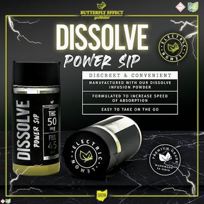 Dissolve Power Sip, a 50mg THC flavored beverage shot, offering a portable and easy-to-dose option.