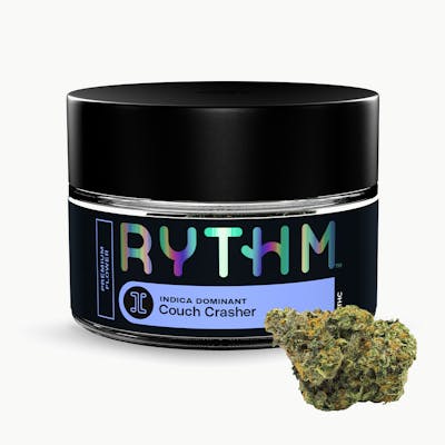 RYTHM Premium Flower delivers a consistently elevated cannabis experience from the #1 Flower Brand in the World¹. Featuring a curated lineup of iconic, high-potency strains, each jar is expertly cultivated, hand-trimmed, and meticulously cured to showcase lush aromas, rich flavors, and terpene-forward profiles. Every harvest is selected for trusted, reliable quality, with larger buds and fewer pieces per jar for a more premium presentation. Sealed for freshness, RYTHM Premium Flower offers bold potency, vibrant terpene expression, and the dependable experience discerning consumers expect every time. Couch Crasher [orig: Sunset Sherbert x Animal Cookies] is a smooth indica that delivers creamy dessert sweetness accented by citrus, earth, and cookie dough. ¹Based on BDS Analytics data, 2025 Year to Date through November 2025. #1 position is based on Revenue generated through branded cannabis flower sales in all markets tracked by BDS Analytics.