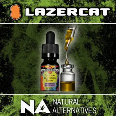 NEW FROM LAZERCAT: SOLVENTLESS ROSIN DROPS! CLEAN, SUPER POTENT, SUGAR-FREE, VEGAN, AND CRAFTED WITHOUT ADDITIVES OR SHORTCUTS. TAKE THEM STRAIGHT, STIR INTO YOUR DRINK, OR BLEND INTO FOOD. DISCREET, POWERFUL, AND PRECISE, OUR DROPS ARE LIKE A DOSE OF SUNSHINE. 100MG THC PER BOTTLE