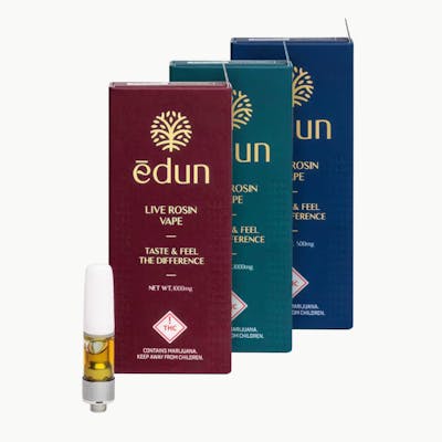 Indica Dominant. Experience the full flavor of super natural terpenes delivered in a solventless and uncut vape cartridge. Our state of the art cartridges are filled with a full flavor, smooth and potent live rosin, made using only flower grown in EDUN's super natural garden. These carts are the perfect way to enjoy terpenes discreetly on the go! EDUN super natural flower is Beyond Organic, Sustainable and Regenerative, all grown and produced with LOVE. Taste and feel the EDUN difference!