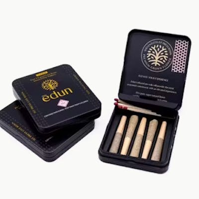 Created for the flower lover that enjoys pairing beyond organic flower with premium cold cure live rosin badder. Rolled from 85% Edun grown super natural flower and infused with 15% terpene rich, live rosin badder. First press and single source only. The half gram dog walker was created to meet the needs of the solo sesh or for sharing as they are packaged 5 – 1/2g Dog Walkers per 5 pk Tin. Edun’s live rosin infused pre-rolls are sure to provide even the most seasoned connoisseur with an elevated experience.