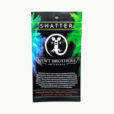 Blue Garlic x Grape Tootzy Newt Brothers Artisanal’s Shatter has high THC potency, the perfect “snap” consistency, shelf stability, and delivers an excellent overall effect, all while being the most affordable cannabis concentrate that we offer – this makes our shatter a favorite among our customers.