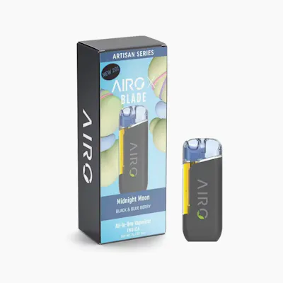 Manifest your desires at the end of your day with the Artisan Series Midnight Moon. As the moon rises, inhale the moonlight and unveil your true self. Nourish your palate with tastes of freshly picked blackberries and blueberries. As you exhale, fill the air with grounding, juicy aromas and let yourself immerse in alleviation. This Indica aligns you with the moon and reveals your inner tranquility for a relaxed and peaceful state. __ Introducing the AiroX 2g Blade – there's a lot to like. With unmatched performance and exceptional flavor in every hit, it boasts a breakthrough design that's both clog-resistant and rechargeable. Get ready for an elevated experience with every use.