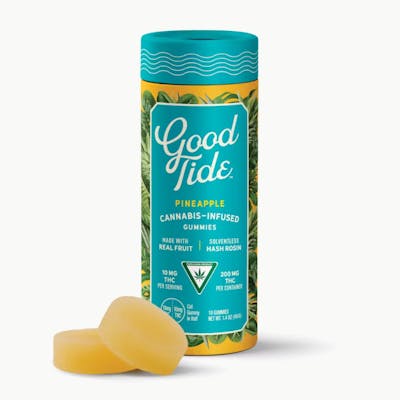 Good Tide Pineapple Gummies are delivering a refreshing burst of tropical flavor and elevated energy — all wrapped in a clean, solventless experience. Made with Solventless Hash Rosin, these gummies preserve the full expression of the cannabis plant: cannabinoids, terpenes, and that unmistakable full-spectrum feeling. Crafted with real pineapple purée, these Sativa-leaning edibles are your perfect daytime sidekick — whether you’re hitting the trails, brainstorming a passion project, or just soaking in the sunshine.