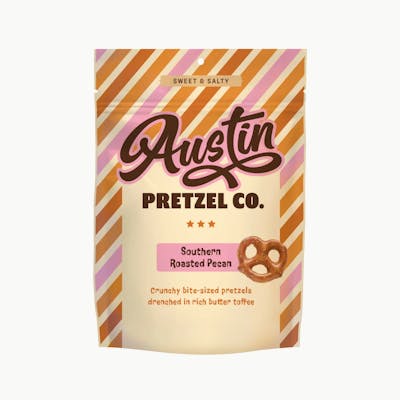 Ah do declare, you’ll fall in love with this sweet southern belle. Crunchy, bite-size pretzels drenched in rich, buttery toffee are then rolled in real bits of crushed pecan that have been hand-roasted to perfection. The result? A tantalizing burst of sweetness that flirts with undeniable Southern charm.