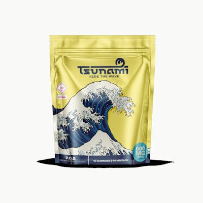 P.O.G. - 600 MG A standard tropical drink, the P.O.G. is a cool blend of pineapple, orange and guava that will have you coming back for more in no time. 60 MG THC per piece | 10 pieces per bag Pectin based - Vegan & Gluten-Free Tsunami is crafted from premium ingredients, a proprietary blend of sugars, naturally derived flavors and utilizes a slow-cure process to ensure a market leading profile in consistency, taste and texture. The oversized pieces provide as much flavor as possible in a high-dose gummy, as well as give enough substance to be able to be cut down into smaller doses. Edibles typically take longer to show effects than other methods of THC intake. Please dose responsibly.