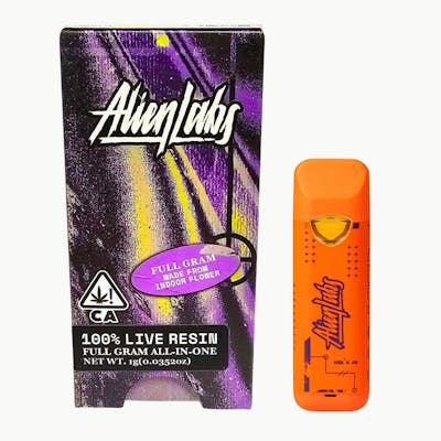 HighLights 🔥 Potency: THC 77.96%, CBD 0.16% Strain: HYBRID Terpenes: Rich in calming and energizing terpenes Effects: Calm, Happy, Relaxed, Energetic Quantity: 1g disposable vaporizer Features: Fast-acting, discreet, and ready to use Dive into the cosmic realms with Alien Labs' DARK WEB LIVE RESIN ALL-IN-ONE. This exceptional HYBRID strain is crafted for those seeking the pinnacle of California cannabis experiences. With a potent 77.96% THC and 0.16% CBD, this 1g disposable vaporizer promises an exhilarating journey of calm, happiness, and relaxation, all while keeping you energetic. Explore the universe of premium marijuana strains at Vibe By California and elevate your senses with the finest cannabis in the state. About DARK WEB LIVE RESIN ALL-IN-ONE 💨 Alien Labs is renowned for its high-quality cannabis that seems almost otherworldly. With a commitment to small-batch cultivation, Alien Labs ensures each plant receives direct care, resulting in unparalleled quality. Their founder's lifelong passion for cannabis cultivation is evident in every product, making Alien Labs a staple in the California cannabis community. Discover more about Alien Labs at Vibe By California. Experience 😌 Calm and serene tranquility Uplifted happiness Deep relaxation Sustained energy boost Taste 🍊 Immerse yourself in a symphony of flavors with DARK WEB LIVE RESIN. This vaporizer offers a smooth, rich taste that harmonizes earthy undertones with a hint of citrus, delivering a truly unforgettable experience. Craftsmanship 🎨 Alien Labs takes pride in its meticulous craftsmanship, ensuring each vaporizer is consistently dosed for maximum satisfaction. The live resin is expertly extracted to preserve the vibrant color and rich trichomes, offering a visually stunning and potent product. Explore Your Vibe 🧙 **Lookin