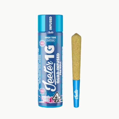 Jeeter High Tide Infused Preroll is a pocket size 1g HYBRID for quick euphoria mellow ease and a light energetic spark This California cannabis HYBRID is made for sunsets playlists and chill linkups with smooth potent clouds Shop at vibecannabis.co