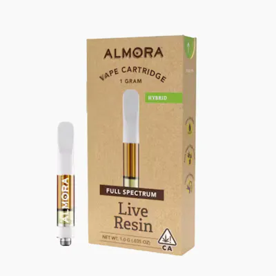 Almora Farm Pressure Live Resin Cartridge is a HYBRID 1g live resin vape sold by Vibe Cannabis delivering quick calm bright mood and steady motivation this HYBRID cartridge is built for all day versatility and clean sessions shop California cannabis at vibecannabis.co