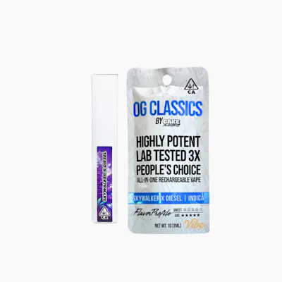 CAKE Skywalker X Diesel OG Classics All In One is an INDICA 1g vape with 82.5% THC and 0.18% CBD made for heavy calm and night ready ease premium California cannabis vape from vibecannabis.co