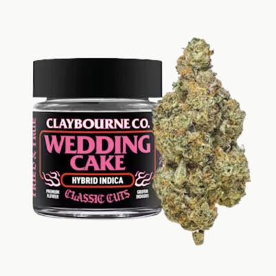 About Claybourne Co Wedding Cake 🍰Wedding Cake is widely known as Triangle Kush x Animal Mints bringing dessert loud aroma and dense frosty buds that INDICA fans reach for