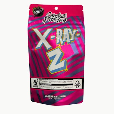Smoken Promises X Ray Z is a premium HYBRID quarter 7g at Vibe Cannabis bringing clear headed calm happy lift relaxed body comfort and a functional HYBRID finish for daytime hangs or after hours.