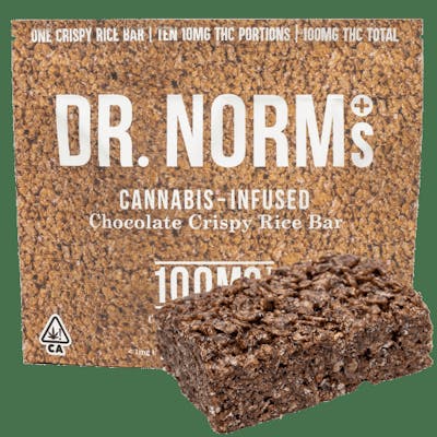 Dr Norms Chocolate Crispy Rice Bar is a 100mg THC HYBRID edible in a gluten free single bar built for calm happy relaxed energy without the fuss dose by bites about 10 servings for steady California cannabis vibes shop this HYBRID at https://vibecannabis.co
