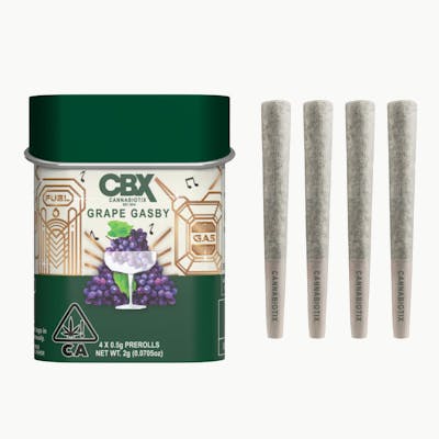 Cannabiotix Grape Gasby 4PK Prerolls is an INDICA 2g pack for relaxed happy ease with a sleepy finish each cone ready to spark from Vibe Cannabis California dispensary