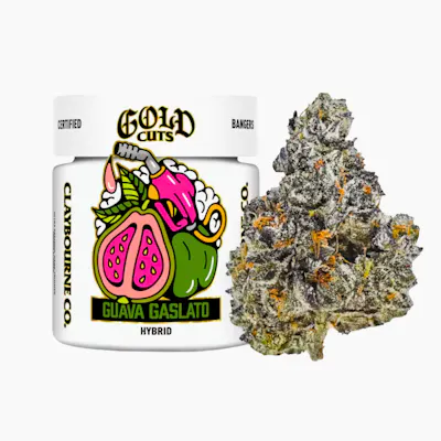 Claybourne Co Guava Gaslato Gold Cuts is a premium HYBRID 3.5g 1 8oz flower drop with 26.4% to 28.5% THC built for uplifted euphoria clear focus and a mellow landing. A top shelf HYBRID pick for California cannabis flower lovers at https://vibecannabis.co.