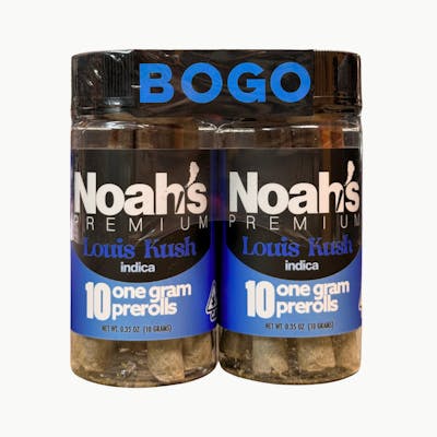 HighLights 🔥Noahs Premium BOGO Louis Kush 10pk pre rolls 20 pre rolls total 20gINDICA INDICA INDICATHC 23%-25% CBD lowReady to smoke grab and go shareable stashEffects relaxed sleepy happy