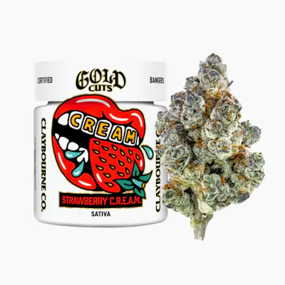 Claybourne Co Strawberry C.R.E.A.M Gold Cuts is a bright SATIVA 1 8oz built for sharp daytime sessions at Vibe Cannabis. Expect a potency forward SATIVA lift with fast mental clarity creative flow and a happy energized mood that keeps you moving and dialed in.