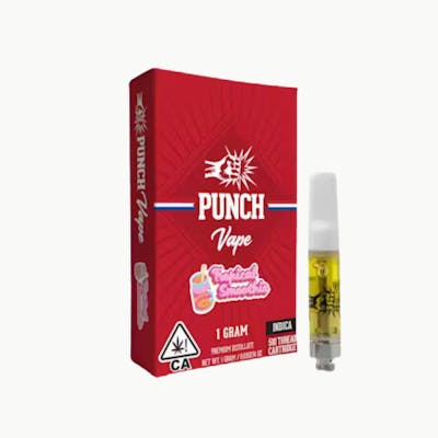 Punch Tropical Smoothie Distillate Cartridge is a high potency 1g INDICA vape made for relaxed happy sleepy ease with a bright fruit forward finish Vibe Cannabis keeps this California cannabis INDICA option ready for quick night sessions