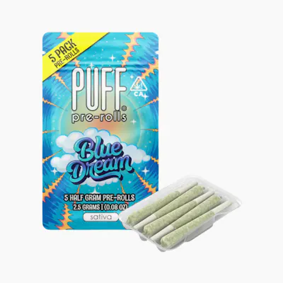 About Blue Dream 5PK Prerolls š«Blue Dream is a beloved SATIVA strain crossing Blueberry with Haze, creating a California classic. PUFF rolls premium flower into convenient 0.5g prerolls, packaged in a 5-pack for extended enjoyment. This SATIVA delivers balanced uplifting effects perfect for productivity, creativity, and social sessions.