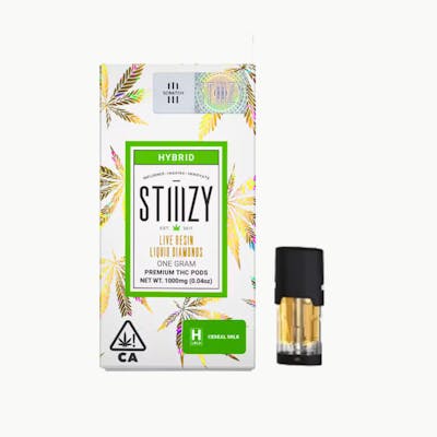 STIIIZY Cereal Milk Live Resin Liquid Diamonds Pod is a potent HYBRID vape built for quick uplift and mellow body ease 1g pod at 84.01% THC and 1.76% CBD delivers balanced HYBRID calm happy clarity and terp rich clouds at Vibe
