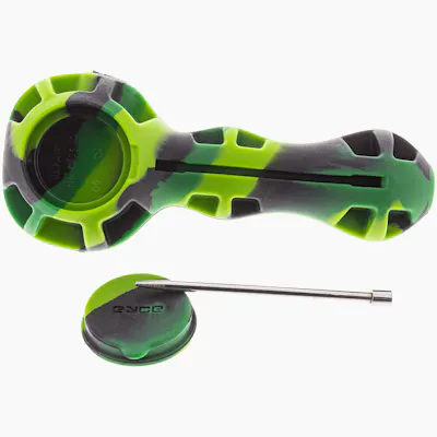 The Eyce Spoon blends borosilicate glass with platinum-cured silicone for an unrivaled and virtually unbreakable smoking experience. It is a feature-packed portable device that brings durability and flavor, as well as aesthetic and functional design, to a whole new level. Constructed with a hidden stash jar for your materials, the Spoon is perfect for on-the-go use. Featuring a built-in steel poker/packer tool to help clear the bowl, the rubber-like silicone body provides a comfortable grip and is high-temperature resistant. The Spoon houses a universal, heat-resistant, durable glass bowl that securely fixes in place, but is easily removable and simple to clean.