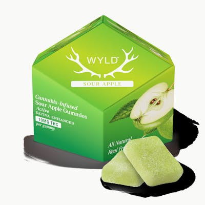 ?Wyld’s mouth-watering Sour Apple gummies are infused with THC and Sativa terpenes for a vibrant, uplifting high.