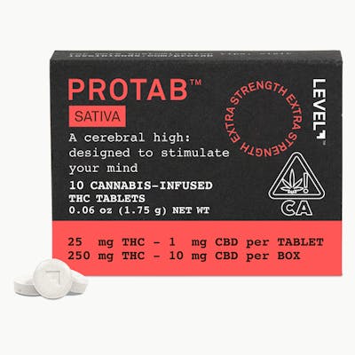 Power through to-do lists and extra-long hikes with the energizing effects of our extra-strength Sativa PROTAB. Each swallowable tablet contains 25 mg of THC that’s highly effective and long-lasting, with a duration of 3–6 hours. Should you want to consume a lighter dose, they’re scored so you can easily split one in half. Swallow with liquid.