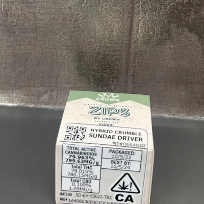 Full gram of crumble made by Zips brand.