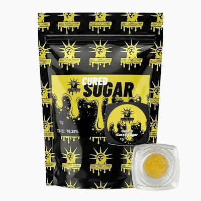 This cut of Gelato leans bright and lemon-forward, bringing a sharp citrus note up front that’s softened by a smooth, creamy finish. Each dab hits clean with that sweet-meets-zesty balance, delivering a light, uplifting head feel before settling into a relaxed, easygoing body effect. It’s flavorful without being overpowering, offering a fresh take on a classic dessert-style profile. So what is sugar? This concentrate is made using cured flower, creating a stable extract with a soft, scoopable texture that’s easy to work with and consistent session to session. The result is a reliable, easy-to-use concentrate that performs whether you’re dabbing, vaping, or topping off flower.