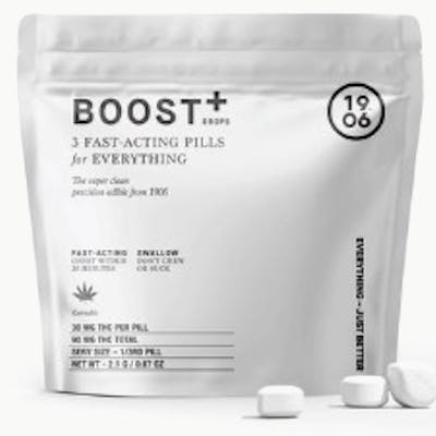 BOOST+ for everything. Get a boost with the fastest, cleanest, and healthiest way to consume THC. Boost is the only 1906 Drop not infused with plant medicines or designed to create a specific effect. Simply swallow to enjoy a healthier, microdosed high in 20 minutes or use to boost any other 1906 Experience. Swallow, don't chew. Fast acting, zero sugar, vegan, zero calories, gluten free. Each boost drop contains 30mg THC.