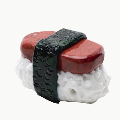 Aloha! Empire Glasswork’s iconic dry pipes are a testament to their lampwork mastery. The Spam Musubi Dry Pipe features a thick slab of spam on a rice ball wrapped with some seaweed. Made fully of strong borosilcate glass mean to last. The carb is on the left side on the rice ball. The perfect dry pipe for any Islander, Haole, or Maui Wowie Lover! Features: Borosilicate Glass Left Side Carb Hole Empire Glassworks Stamp Spam Musubi Design Dimensions: Length: 5.25" Width: 2.25" Weight: 184g *Individually Handcrafted Art Piece - Limited Quantity and Availability