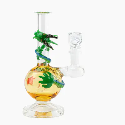 This fierce, Dragon Sphere Mini-Tube and accompanying quartz banger and glass cap are designed for use with legal oils & concentrates. They feature a certain iconic earth dragon clutching his precious gold treasure. "Eternal Dragon, By your Name I Summon You!!!" Features: Dragon Sphere Tube Body Fixed Three-Hole Downstem 14.5mm Reinforced Female Banger Hanger Wrapped with Earth Dragon Sculpture