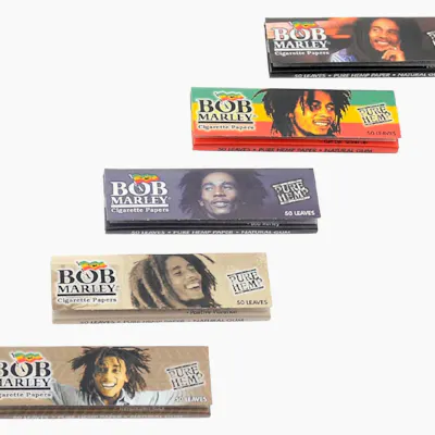 Smoke with a legend and feel like a true Rastafarian! Bob Marley 1 1/4 Rolling Papers are made with the highest quality hemp and all-natural gum - in the perfect size to roll your special herbal blend. Light up and enjoy the slow, smooth burn of these legendary papers. With 50 sheets per pack and 25 packs per box, you'll be set for some truly memorable experiences. Feel inspired by Bob's music while rolling up one of his own Rolling Papers! Buy now and become part of the legacy of Bob Marley.