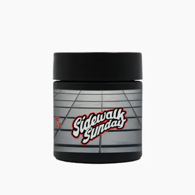 Sidewalk Sunday is a potent, Indica-dominant hybrid created by crossing Gelato 41 and Happy Accident. Known for its high-quality, sticky, and frosty buds, this strain offers a well-balanced, calming high that affects both mind and body. It features a sweet, earthy, and pungent terpene profile. Strain Details: Genetics: Gelato 41 x Happy Accident Potency: High, delivering a very strong and long-lasting experience Appearance: Dense, sticky buds with dark and light green hues, heavily coated in trichomes with true top-shelf quality Aroma & Taste: Pungent, sweet, and earthy aroma with a flavor profile that mirrors the scent Effects: Provides a relaxing yet balanced high that’s ideal for unwinding while maintaining mental ease Terpenes: Commonly dominated by Myrcene, Limonene, and Beta-Caryophyllene