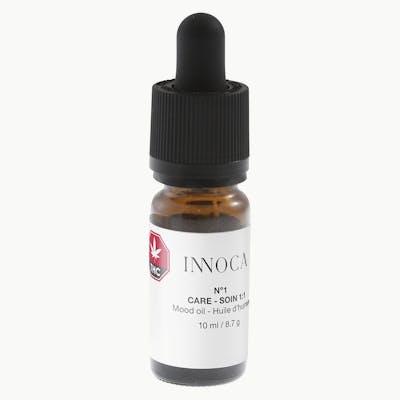 INNOCA is a unique collection of topical personal care products formulated from herbal ingredients and botanical extracts. Inspired by the richness of essential oils, the INNOCA Mood Oils offer a fragrance-based THC and CBD delivery system in a portable packaging format. The Nº1 CARE Aromatic Mood Oil is an essential oil formula enhanced with a 1:1 blend of extracted and distilled THC and CBD cannabinoids. As the name suggests, the aromatherapeutic blend in CARE is a warm and spicy fragrance with sweet undertones that couple a balance of THC and CBD. Features an essential oil blend of frankincense, lemon, eucalyptus, rosemary, thyme and cinnamon. The cannabinoids round out the fragrance with a subtle and pleasant grassy note. The carrier base is skin-friendly jojoba oil. Apply two to three drops to fingertips and/or directly behind the ears, neckline or hairline. Re-apply as desired.