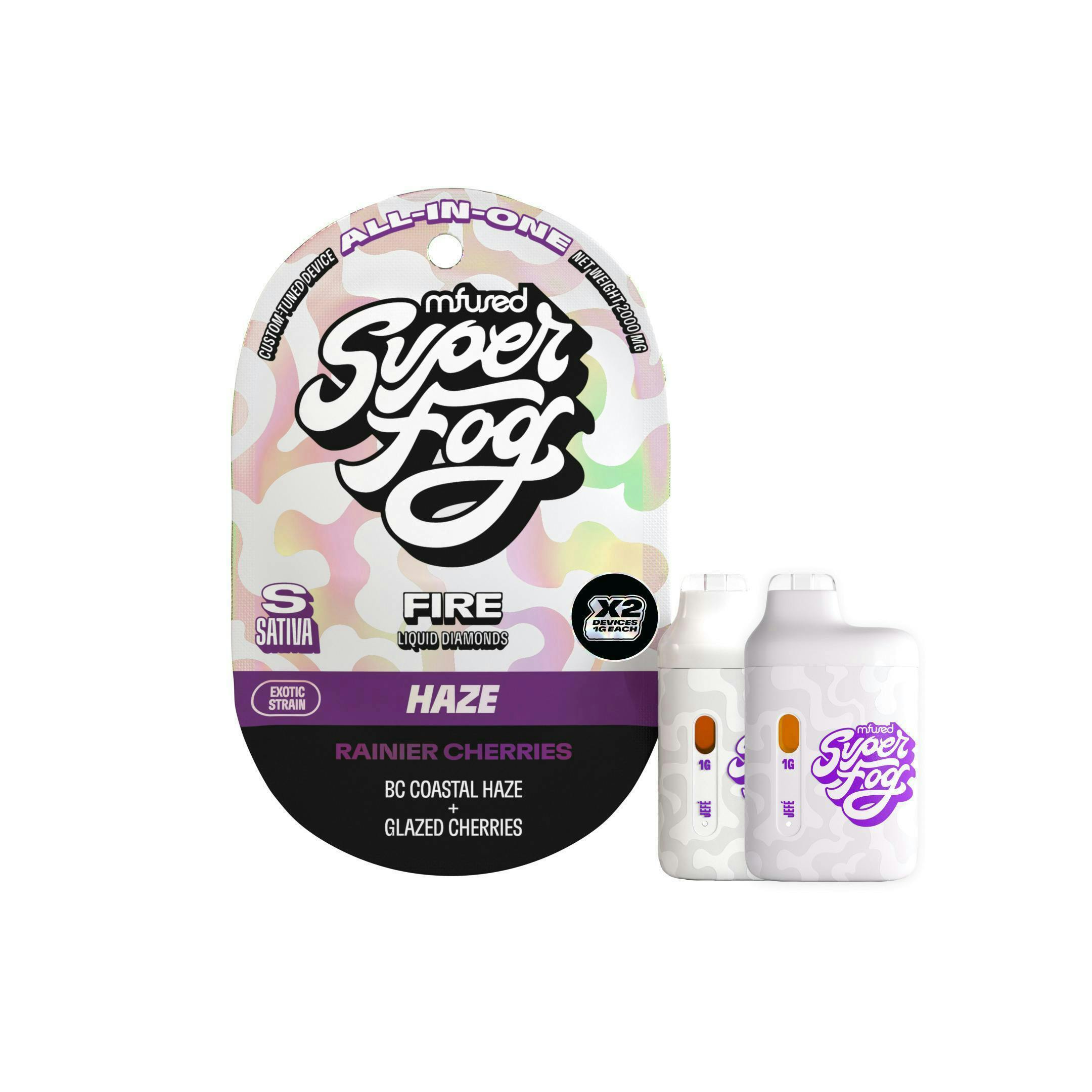 FIRE Liquid Diamonds 1g Jefé - Rainier Cherries (2pk). TYPE: Sativa. GENETICS: BC Coastal Haze x Glazed Cherries. CLASSIFICATION: Exotic Strain / Haze Profile-- Rainier Cherries are a juicy burst of sunshine hailing out of the Pacific Northwest! The tart and fruity flavor from this Mfused Exclusive is the perfect balance of zing and sweetness, making every moment taste like peak cherry season! -- FIRE is a high-potency concentrate crafted from melted THCa diamonds and live resin terpenes, delivering a pure, authentic and complex flavor. This robust extract is powerful and delivers accelerated, intense effects to the user due to its remarkably high THC concentration.