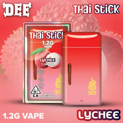 The Dee Thai Lychee All-in-One (AIO) is a 1.2g Indica-dominant vaporizer ("Thai Stick") delivering an authentic, flavor-forward tropical experience with subtle, floral notes of pear and watermelon. It features a durable, rechargeable, and high-airflow design aimed at providing consistent, potent flavor from the first to the last draw
