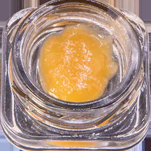 Granular concentrate with a wet, sandy texture resembling brown sugar, balancing potency with preserved terpenes.